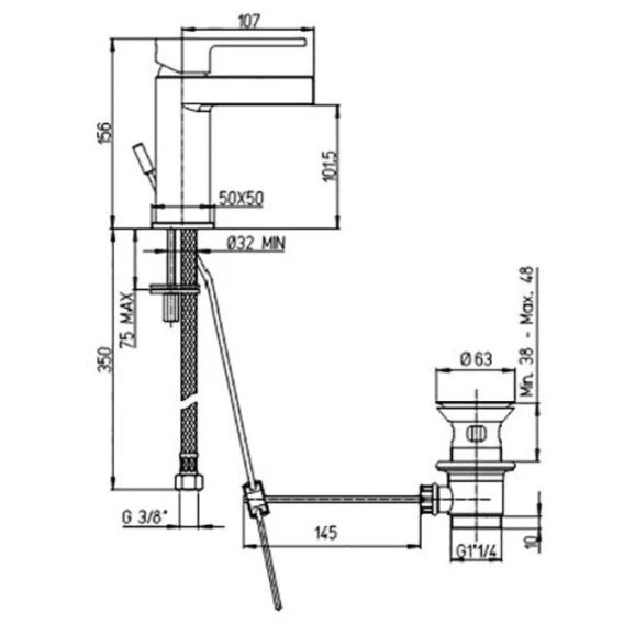 Смеситель для раковины с донным клапаном Paini Dax-R 84CR211WFRKM