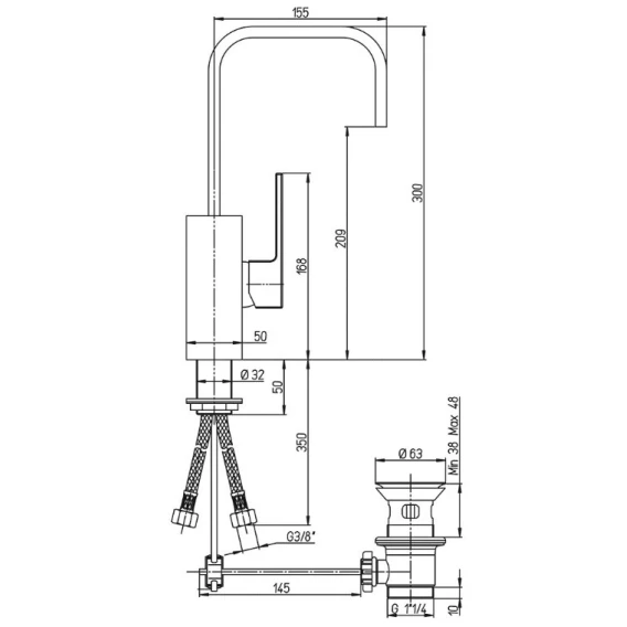 Крепление, Аэратор, Гибкая подводка, Донный клапан