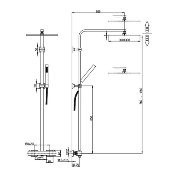 Душевая система 300 мм Paini Dax-R 84CR689TH3SQP1