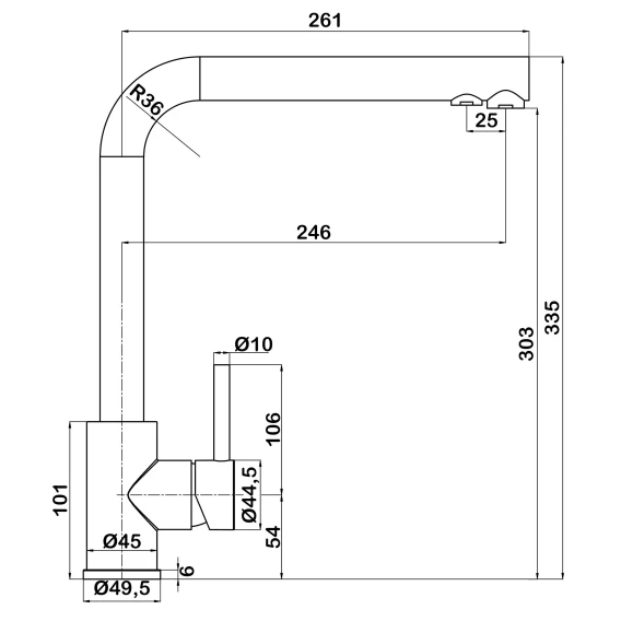 Длина излива 24.6 см
