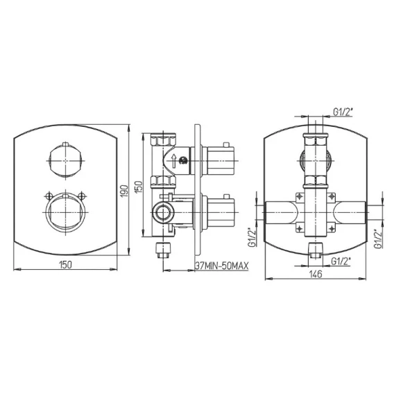 Душевой комплект AQG Alpha 19ALTEC22502 250 мм, с термостатом, хром