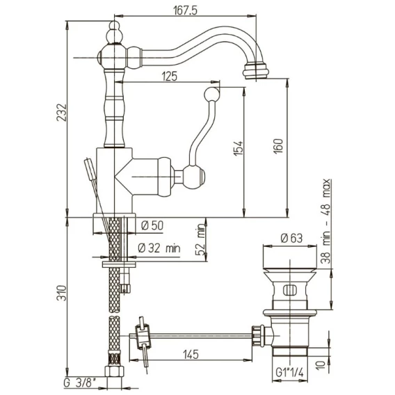 Высота излива 16 см