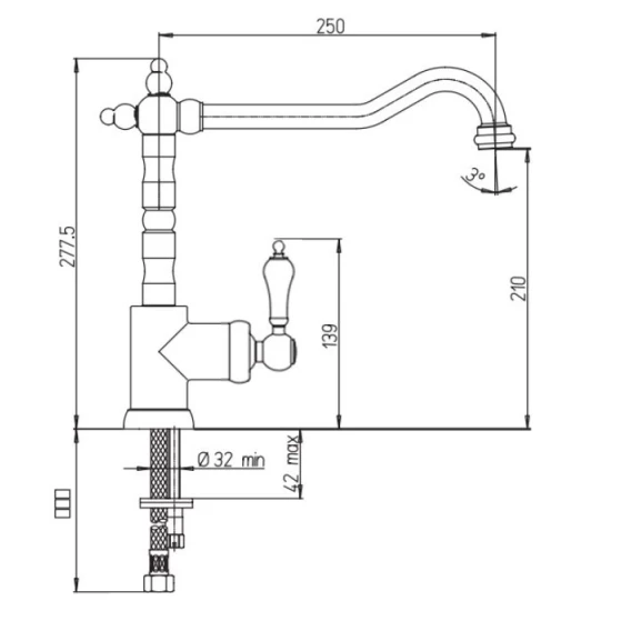 Высота излива 21 см