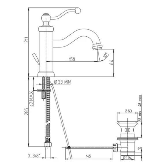 Высота излива 8.4 см