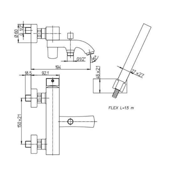 Аэратор, Металлическая розетка, Эксцентрики, Душевой шланг, Душевая лейка, Держатель для душевой лейки