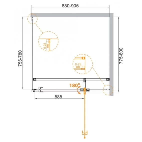 Габариты с диапазоном регулировок, мм: (880-905)x(780-805)x1950