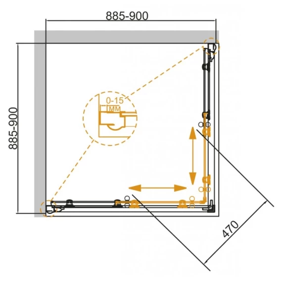 Габариты с диапазоном регулировок, мм: (885-900)x(885-900)x1950