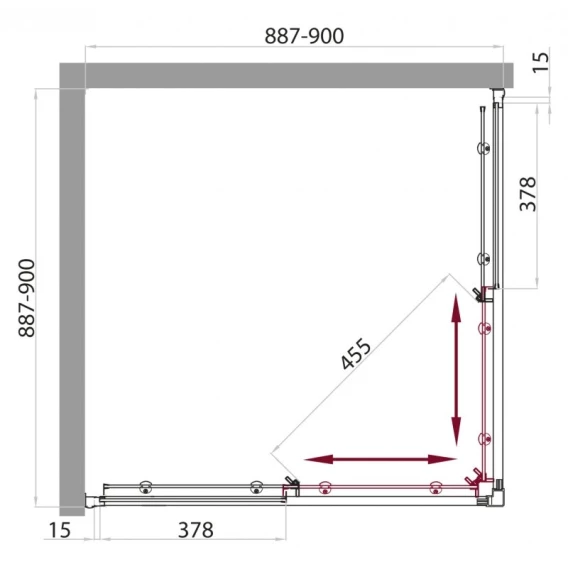 Габариты с диапазоном регулировок, мм: (887-900)x(887-900)x2350