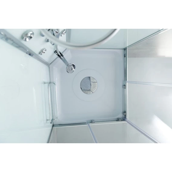 Душевой шланг, Душевая лейка, Держатель для душевой лейки, Подключение для душевого шланга, Полочка, Ручки, Верхний душ, Металлический каркас, Поддон, Смеситель, Сифон, Ножки