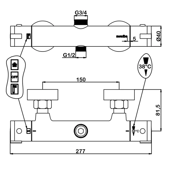 Металлическая розетка, Эксцентрики, Душевой шланг, Душевая лейка, Держатель для душевой лейки, Верхний душ, Кронштейн, Мыльница, Штанга душевая, Термостат
