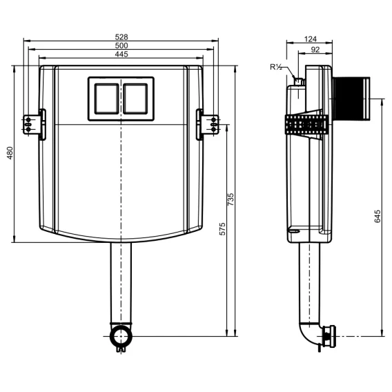 Габаритная глубина 124 ммс крепежными уголками, соединитель сливной трубы, без крепежного материала, без кнопки смывакомбинированная упаковкаМожет комбинироваться с: для настенного унитаза, для напольного унитаза, рядом со стенойуправление спереди, Перенос функций кнопок на отводную арматуру с помощью гибких кабелей, соединение с кнопкой смыва посредством поворотно-нажимного соединения, с защитой для смывной трубыИзолированный от конденсата скрытый смывной бачок с 2 объемами смыва 3/6 л, с возможностью переналадки на 3/4,5 л, макс. Объем смыва 7,5 л, с клапаном наполнения арматурной группы I, с гарнитурой для присоединения углового клапана R1/2, состоящей из двух частей, защитный кожух для ревизионного отверстия, сливное колено с защитой, Знак технического контроля для скрытого смывного бачка: арматурная группа I