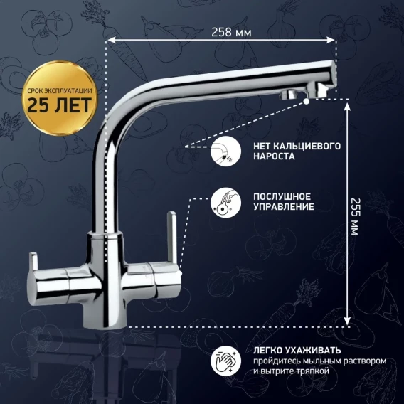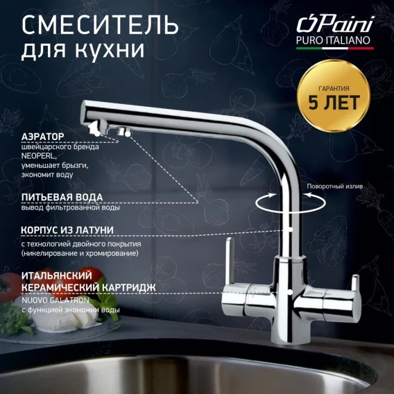 Смеситель для кухни с подключением к фильтру Paini Arena 92CR6433VEB90DAKM