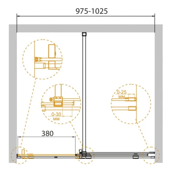 Габариты с диапазоном регулировок, мм: (975-1025)x1950