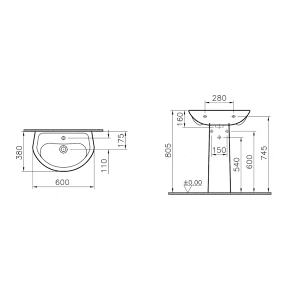 Раковина 60 см с пьедесталом Vitra Arkitekt 9601B003-7650