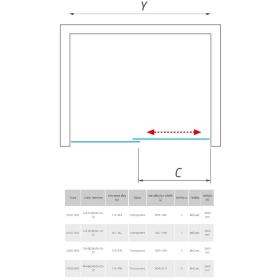 Душевая дверь Roltechnik Kinedoor KID2/1500 970-1500000-00-02 прозрачное
