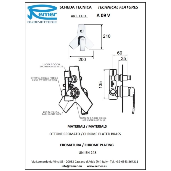 Смеситель для ванны Remer Atmos A09V