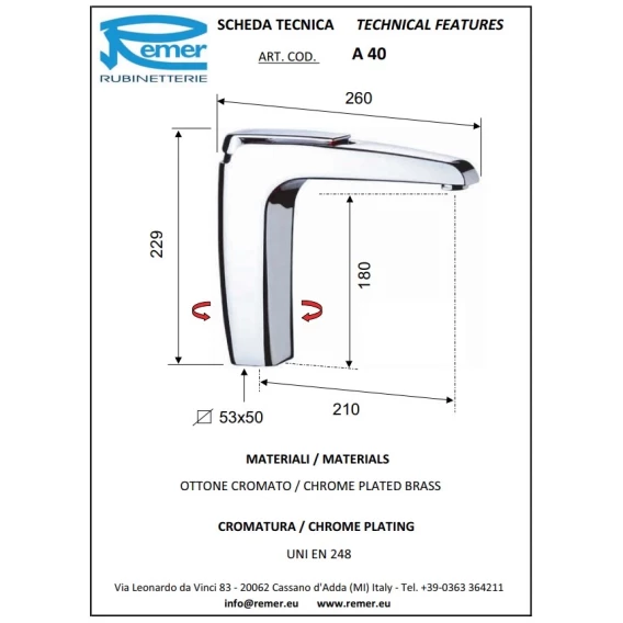 Излив для ванны 170 мм Omnires Parma WDPARMACRB