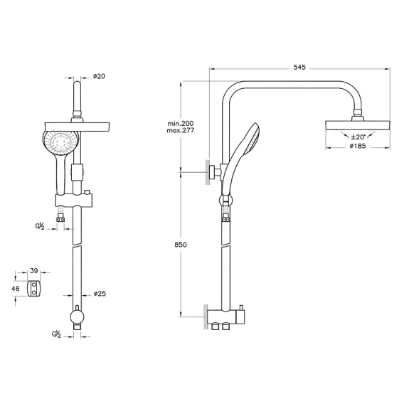 Душевой шланг, Душевая лейка, Держатель для душевой лейки, Верхний душ