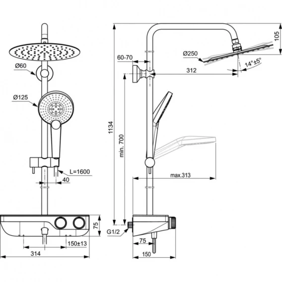 Душевая система 250 мм Ideal Standard Ceratherm S200 A7331AA