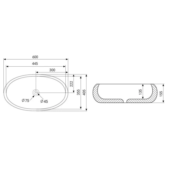 Раковина 60x40,5 см Abber Bequem AC2102MB