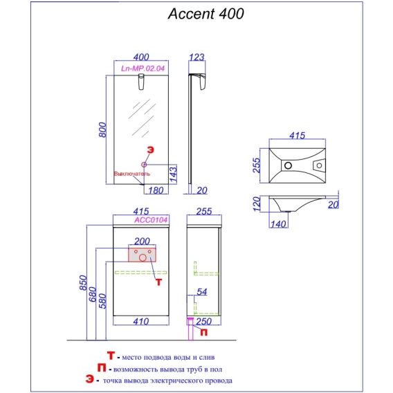 Тумба с раковиной белый глянец 41,5 см Aqwella 5 Stars Accent ACC0104W + Mal.04.04.D