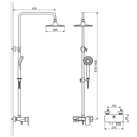 Душевая система 200 мм Excellent Rain Altar ARAC.SY.781CR