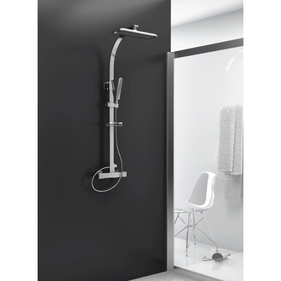 Металлическая розетка, Эксцентрики, Душевой шланг, Душевая лейка, Держатель для душевой лейки, Верхний душ, Кронштейн, Мыльница, Штанга душевая, Термостат