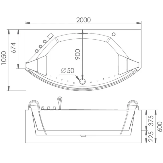 Акриловая гидромассажная ванна 200x105 см Gemy G9079