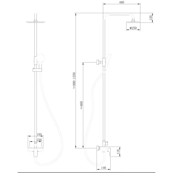 Металлическая розетка, Эксцентрики, Душевой шланг, Душевая лейка, Держатель для душевой лейки, Верхний душ, Смеситель, Кронштейн, Штанга душевая
