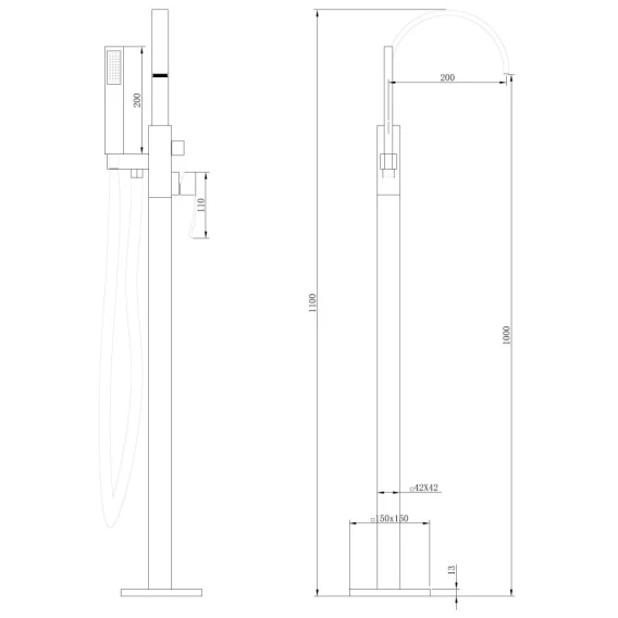 Смеситель напольный для ванны Abber Wasserfall AF8615B