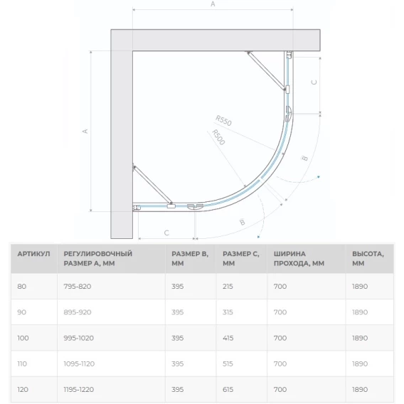 Душевой уголок 120x120 см Vegas Glass AFS 120 07 01 прозрачное