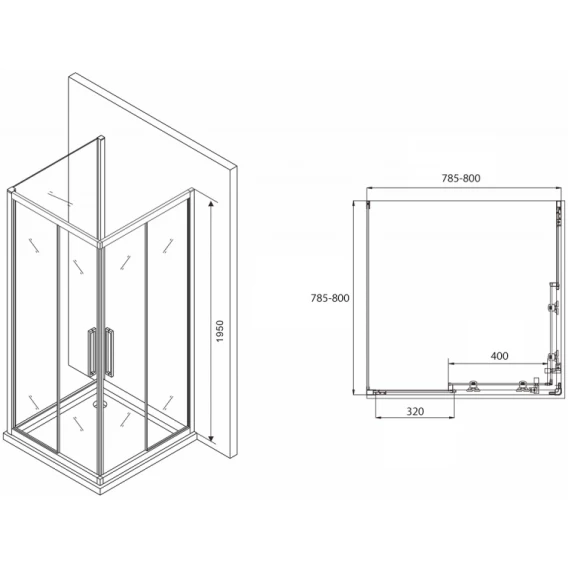 Душевой уголок 80x80 см Abber Schwarzer Diamant AG02080BH-S80B прозрачное