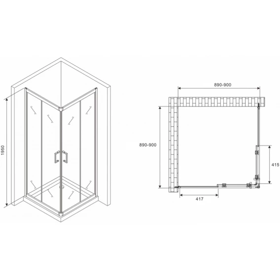 Душевой уголок 90x90 см Abber Schwarzer Diamant AG02090B5 прозрачное