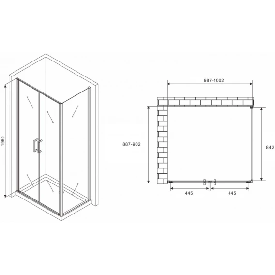 Душевой уголок 100x90 см Abber Sonnenstrand AG04100BC-S90B прозрачное