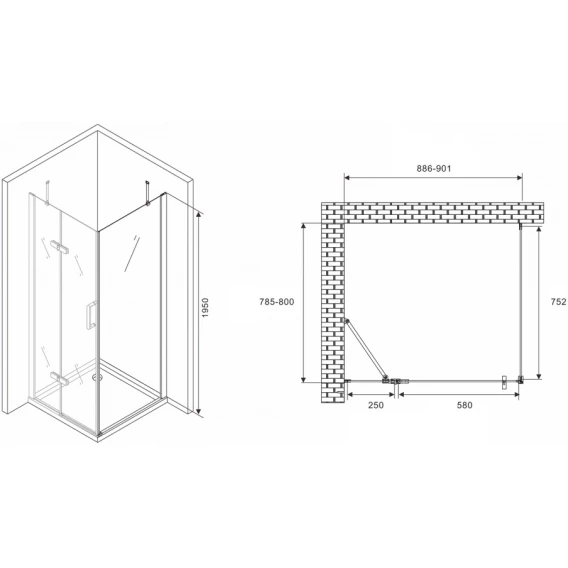 Душевой уголок 90x80 см Abber Zart AG08090-S81 прозрачное