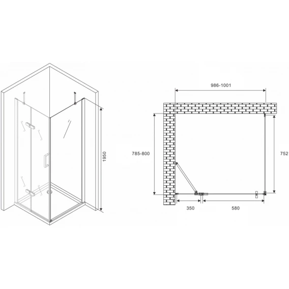 Душевой уголок 79,8x100 см Abber Zart AG08080P-S101 прозрачное