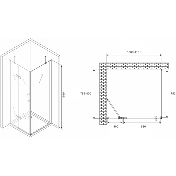 Душевой уголок 110x80 см Abber Zart AG08110-S81 прозрачное