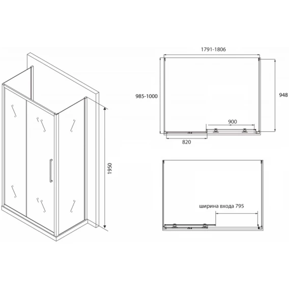 Душевой уголок 180x70 см RGW PA-74B (PA-14B+Z-050-2B) Passage 410874187-14 прозрачное