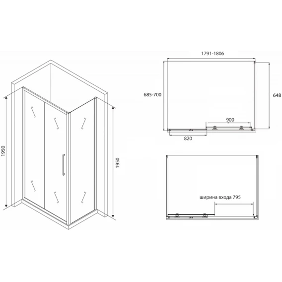 Душевой уголок 180x70 см Abber Schwarzer Diamant AG30180BH-S70B прозрачное