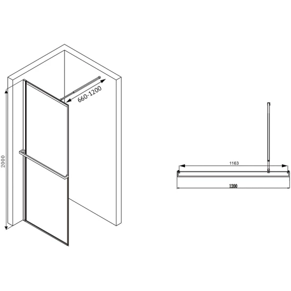 Неподвижная перегородка 120 см Abber Immer Offen AG60120B8 прозрачное