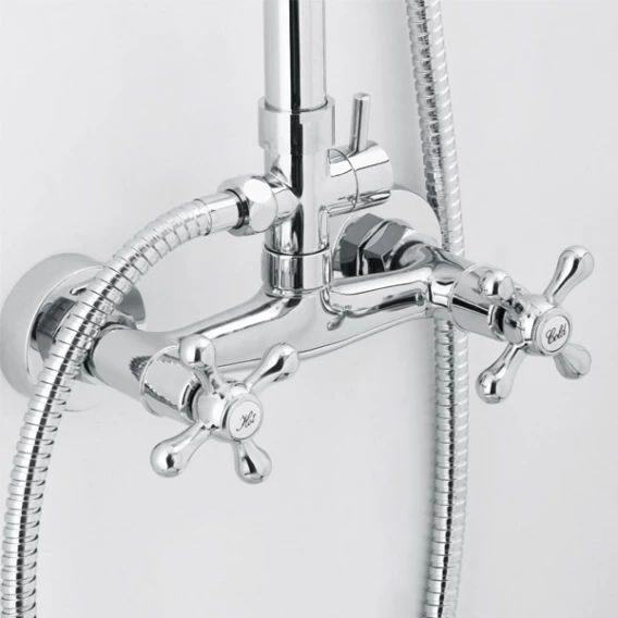 Металлическая розетка, Эксцентрики, Душевой шланг, Душевая лейка, Держатель для душевой лейки, Верхний душ, Смеситель, Кронштейн, Штанга душевая