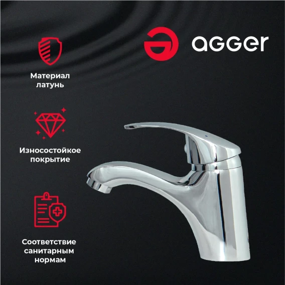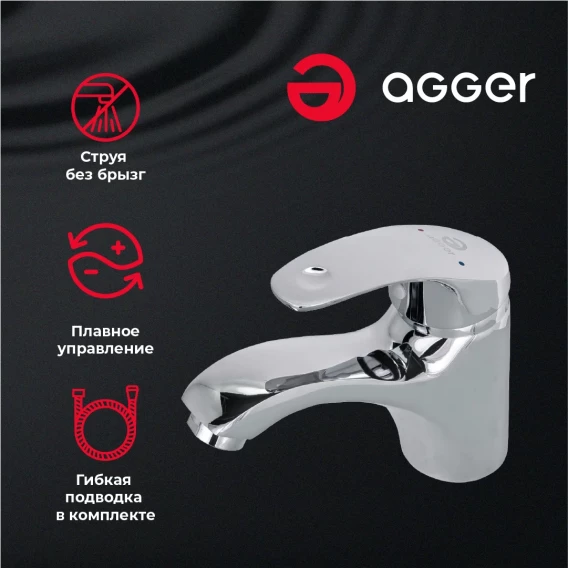 Смеситель для раковины без донного клапана Agger Glad A1502100