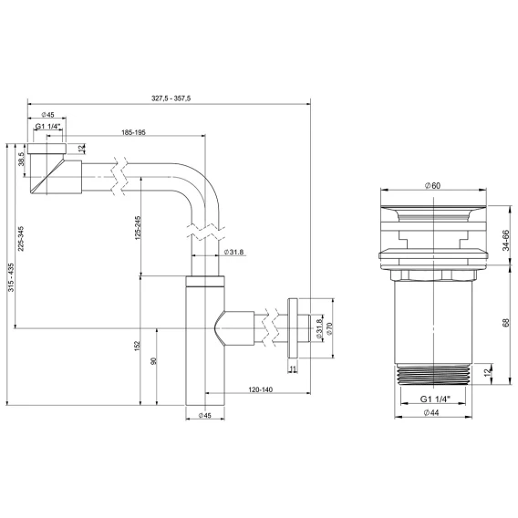 Сифон для раковины Wellsee Drainage System 182124000 + 182144000