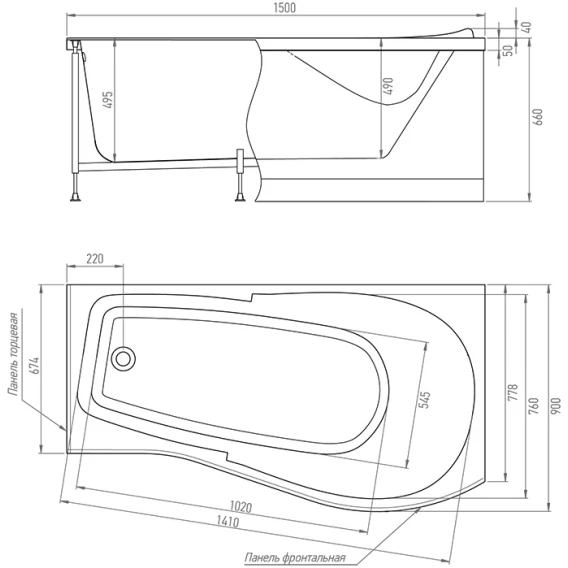 Акриловая ванна 150 см Aquatek Афродита AFR150-0000006