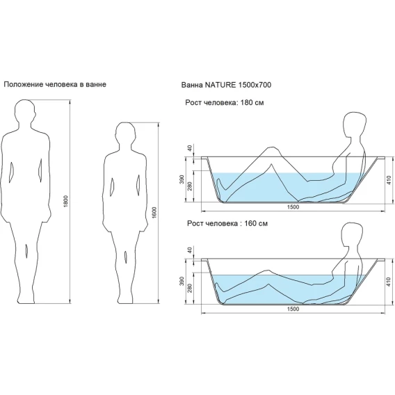 Акриловая ванна 150x70 см Cersanit Nature A64243