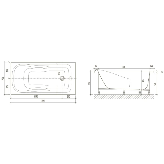 Акриловая ванна 150x75 см Eurolux Alla E1015070005
