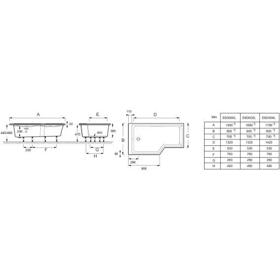 Акриловая ванна 159x90 см Jacob Delafon Bain-Douche Neo E6D000L-00