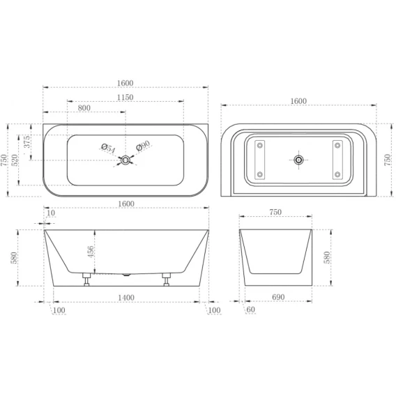 Акриловая ванна 160x75 см Abber AB9223-1.6