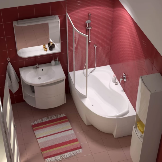 Ванну Rosa 95 можно дополнить шторками для ванн VSK2 или CVSK1. В качестве дополнительных аксессуаров рекомендуем: переднюю панель, сточный комплект для ванны. Ванна гармонично сочетается с остальными изделиями одноименной концепции, а именно: умывальником, мебелью и смесителями.