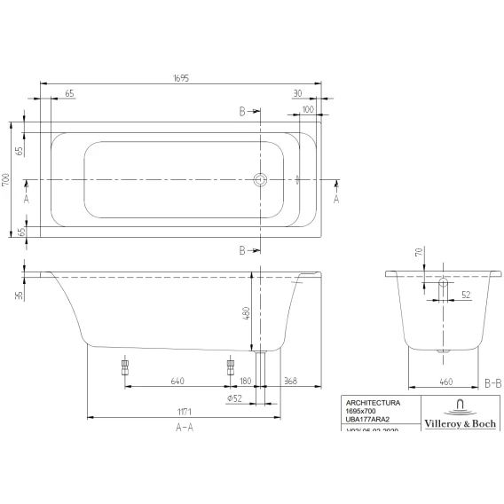 Акриловая ванна 169,5x70 см Villeroy & Boch Architectura UBA177ARA2V-01